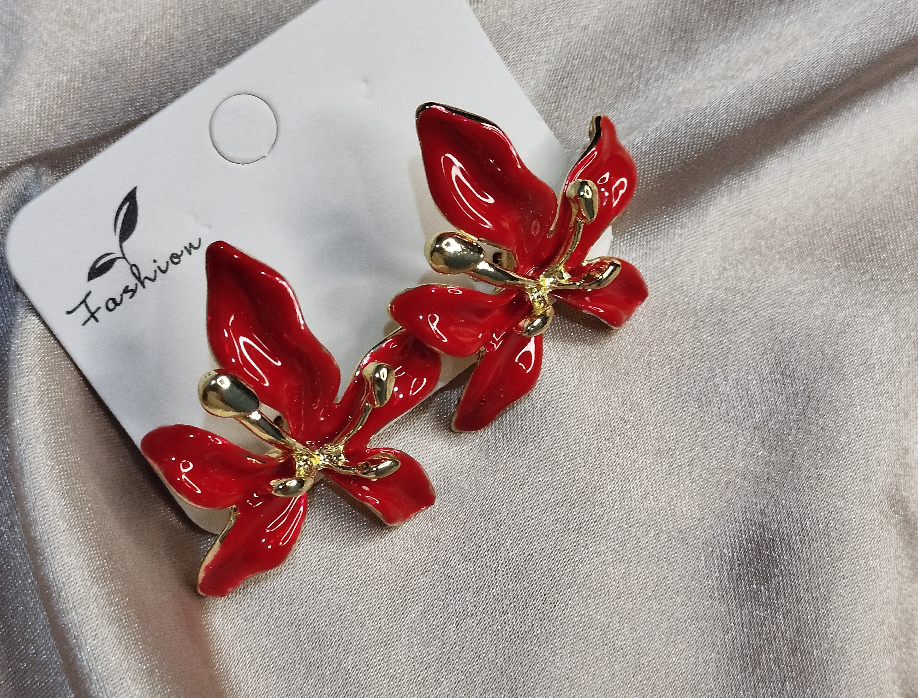 گوشواره زنانه سودا میخی طرح ارکیده رنگ ثابت ضد حساسیت